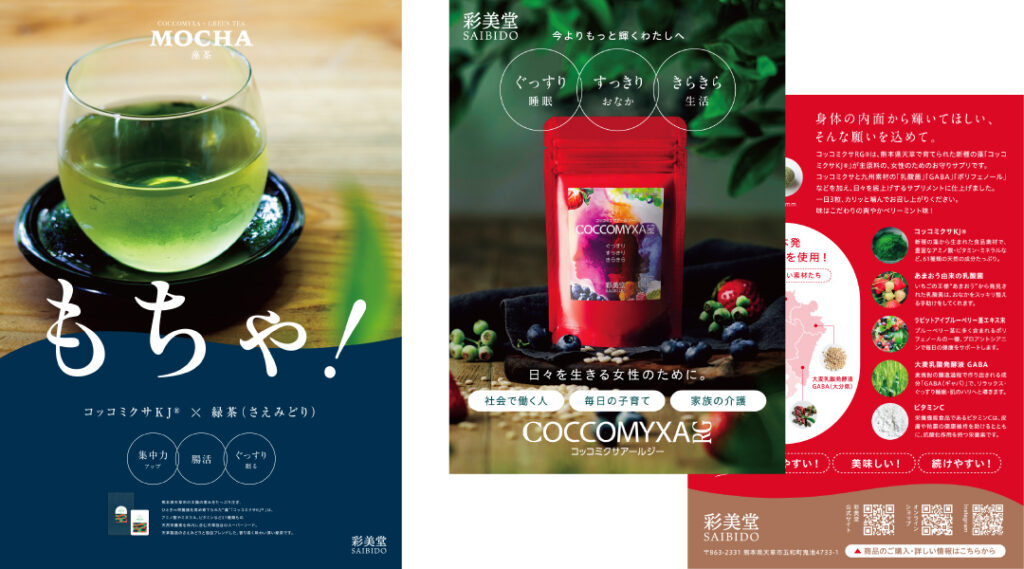 九州の素材を使用した噛んで美味しいサプリメント「コッコミクサRG®」など、